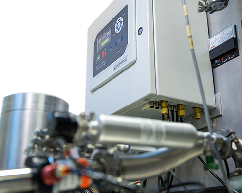 Close-up of tracer gas detection on a vacuum chamber component
